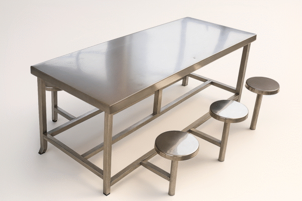 Moreover, its corrosion-resistant construction makes it suitable for humid or high-use environments. Consequently, institutions and offices can rely on this table for daily use while promoting hygiene and safety. In addition, the table’s smooth stainless steel surfaces are easy to sanitize, ensuring a clean and safe dining experience for all users.