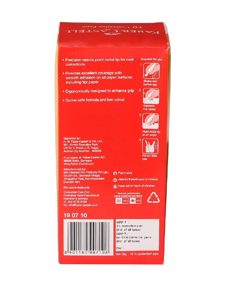 Faber-Castell Correction Pen Pack of 10 from Edischoolmart is a must-have stationery product for clean and accurate writing. It offers quick, easy, and precise correction, making it ideal for schools, offices, and home use. Whether you are a student, teacher, or professional, this pen helps you fix errors neatly and quickly.