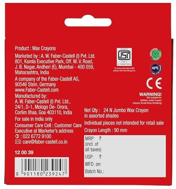 Faber-Castell Wax Crayons Jumbo 90 mm, available under the Stationery Supplies category on Edischoolmart, truly inspire creativity and fine motor skill development in young learners. These easy-to-hold crayons not only make colouring fun but also help children build hand control effectively. Furthermore, designed for children aged 3 years and above, they offer the perfect blend of safety, comfort, and vibrant results.