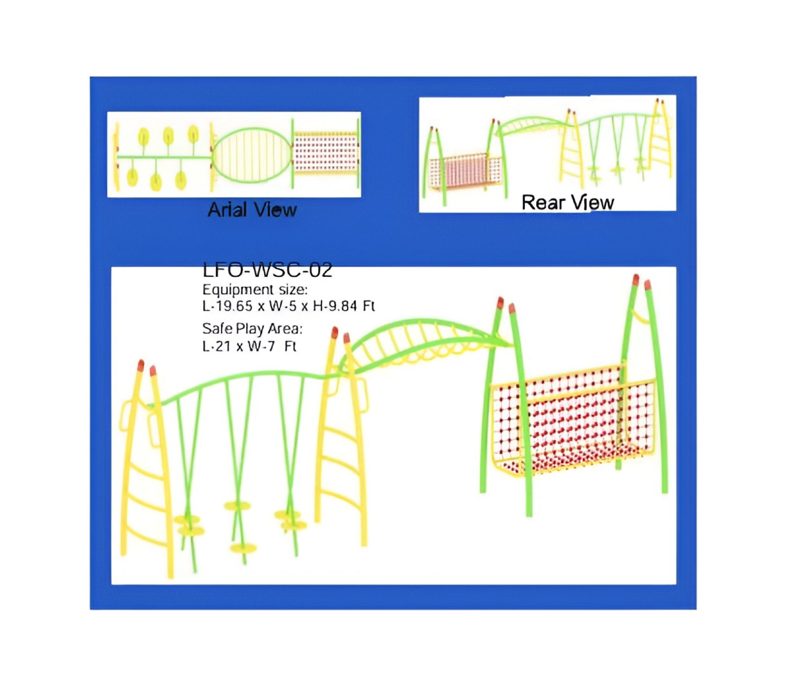 The Web Scramblers feature a strategically designed rope web pattern that allows multiple children to climb simultaneously. The interconnected rope layout creates a dynamic climbing experience that improves balance and agility. Moreover, the structure encourages children to explore movement from different angles, making outdoor play more exciting and interactive. - Heavy-Duty Frame